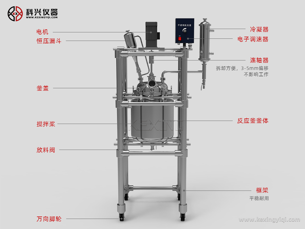 上海科興儀器生產(chǎn)雙層不銹鋼反應(yīng)釜主要用于制藥、化工、實(shí)驗(yàn)室等機(jī)構(gòu)的有機(jī)合成實(shí)驗(yàn)室用中式設(shè)備,用于有機(jī)物合成實(shí)驗(yàn)中,是生化制藥中的主要設(shè)備之一。